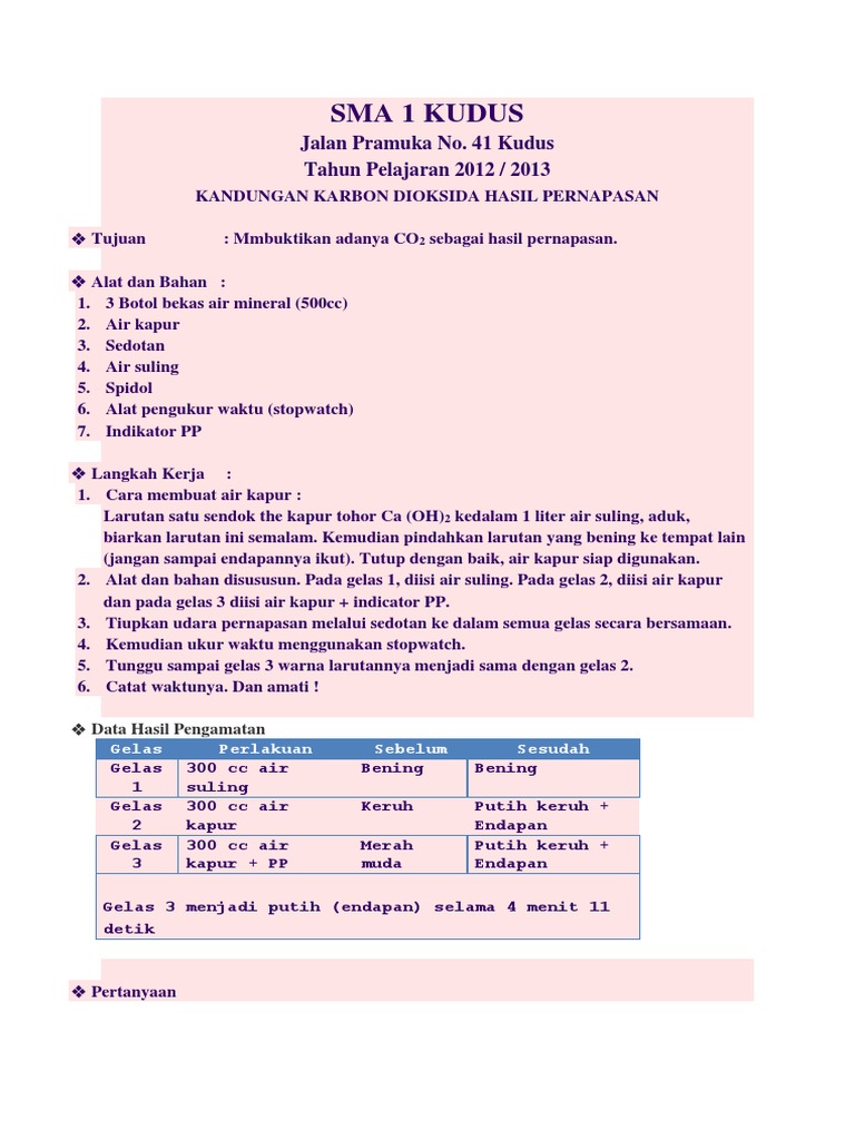 Laporan Percobaan Respirasi Pada Makhluk Hidup Media Ilmu
