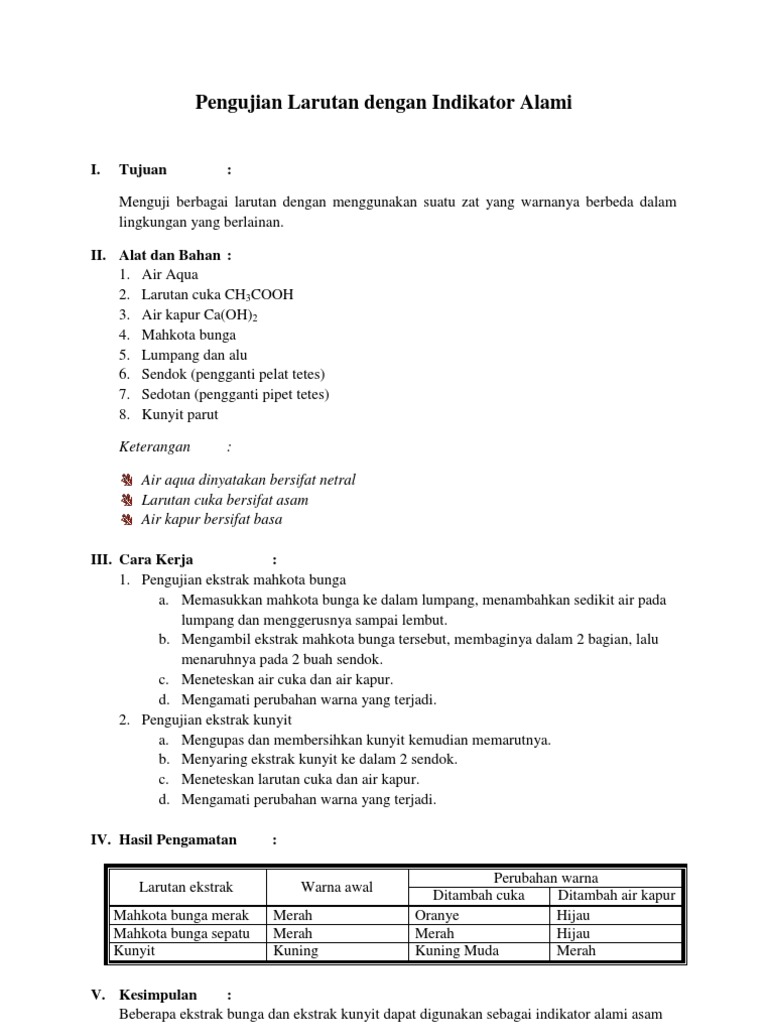 Laporan Pengujian Larutan Dengan Indikator Alami
