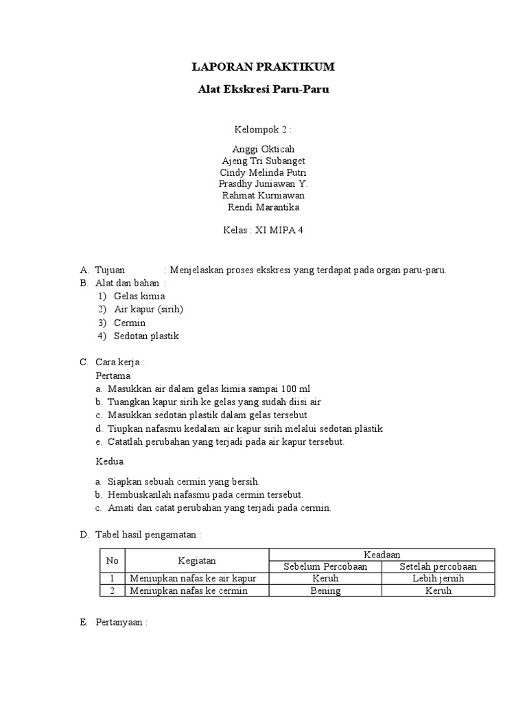 Laporan Praktikum Membuktikan Udara Hasil Pernapasan