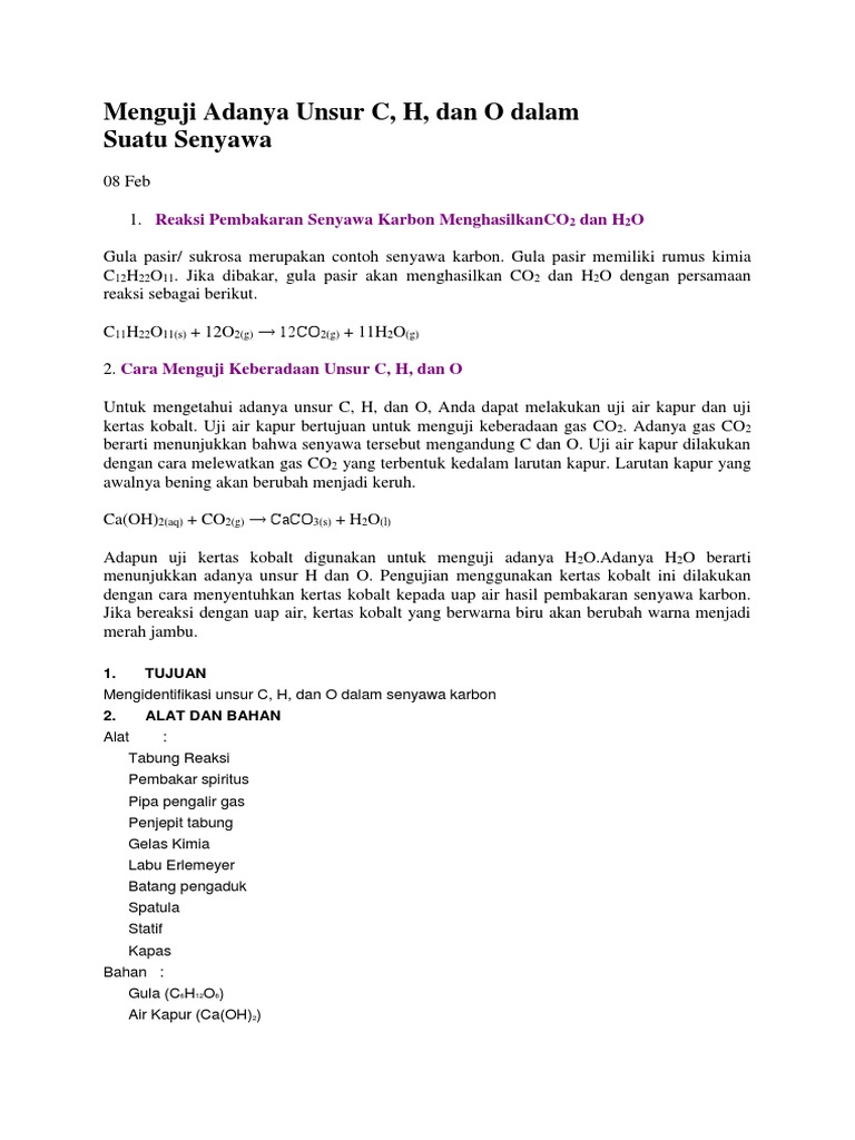Cara Menguji Adanya Unsur C H Dan O Dalam Suatu Senyawa Kimia