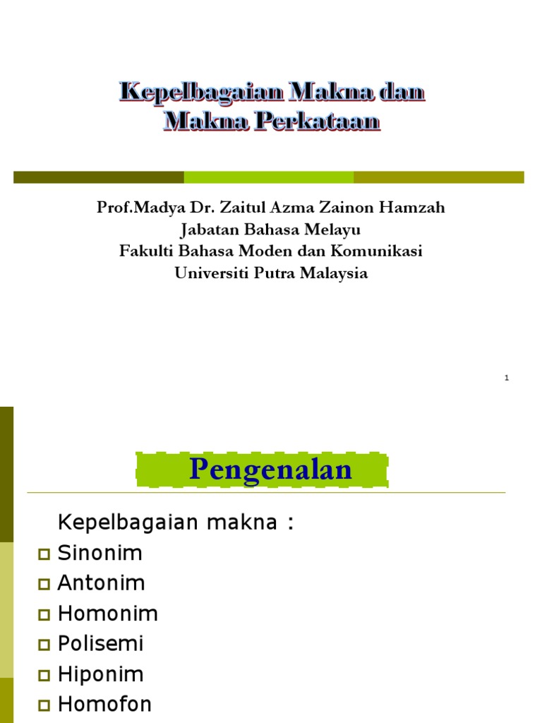 Bbm 3212 3206 Unit 5 Kuliah 1 Kepelbagaian Makna Dan Makna