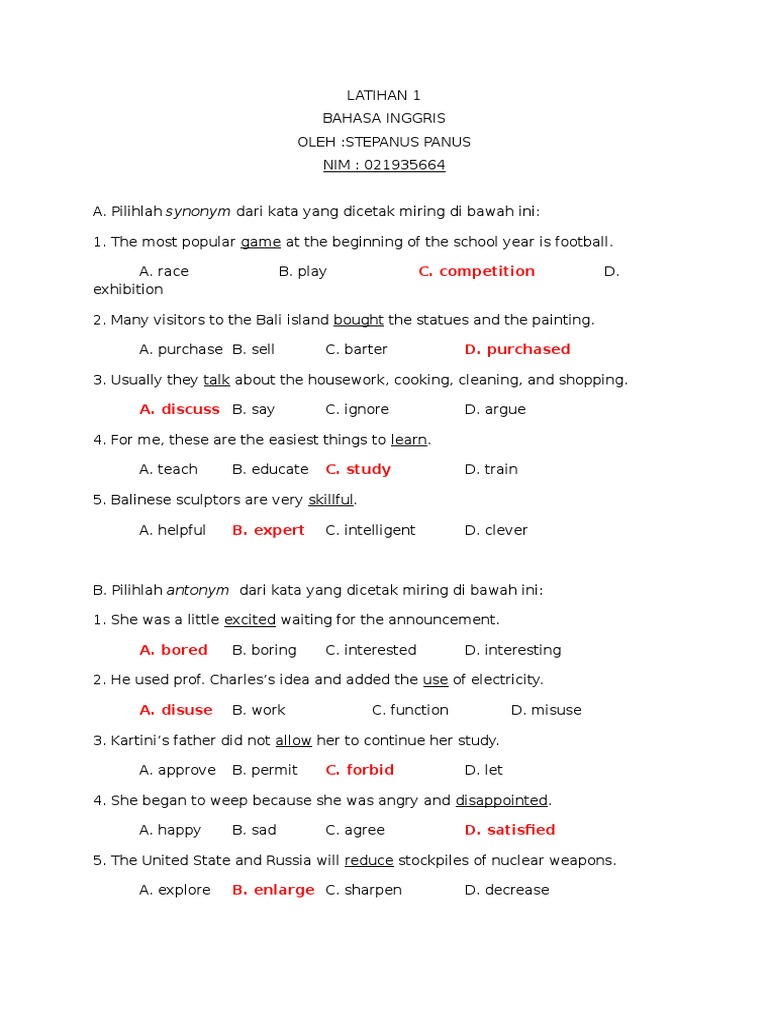 Doc Latihan Sinonim Antonim Hiponim Homonim 공원 린 Academia Edu