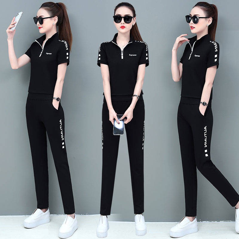 2pcs Kasual Fesyen Sukan Saman Wanita Puncak Seluar Sukan Set
