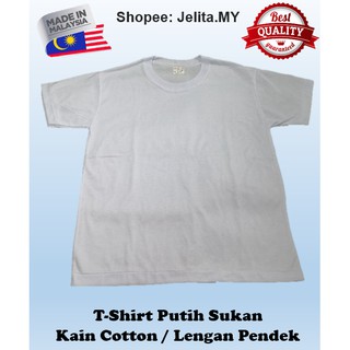 T Shirt Putih Sekolah Kolar Bulat Lengen Pendek Sukan Pra