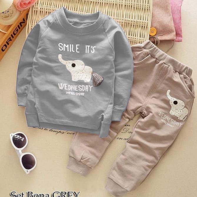 Promo Shopee Setelan Anak Gambar Gajah Warna Abu Celana Warna