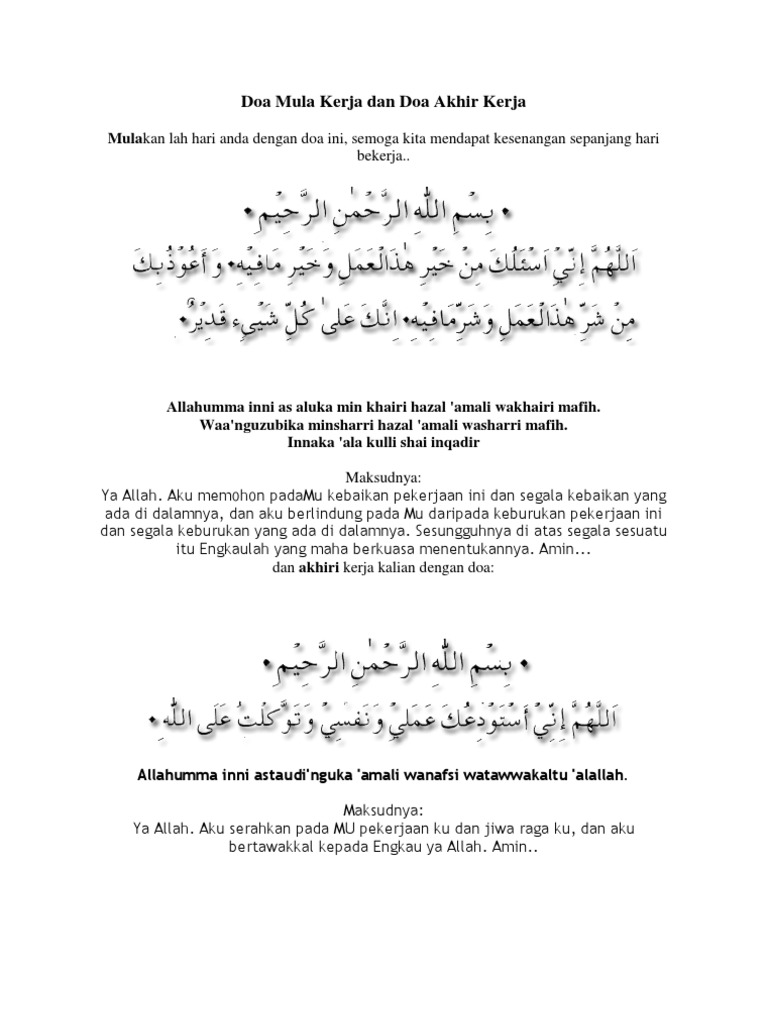 Doa Mula Dan Tamat Bekerja 1khalifah