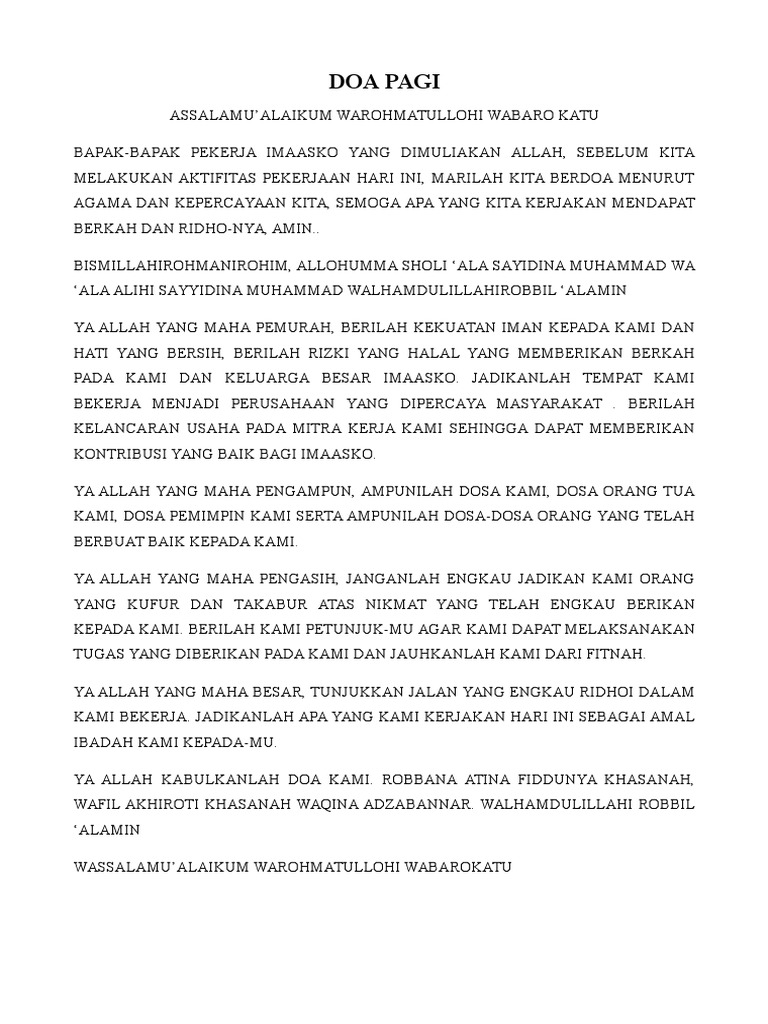 Contoh Do A Apel Pagi Sebelum Melaksanakan Tugas Di Kantor Dan