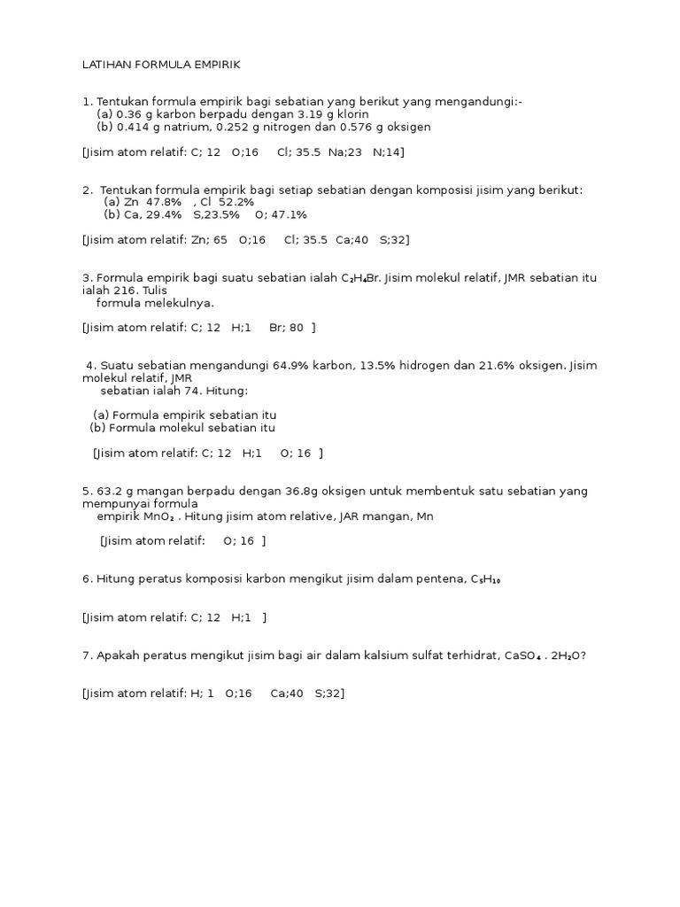 Bab 1 Latihan Jirim Formula Empirik