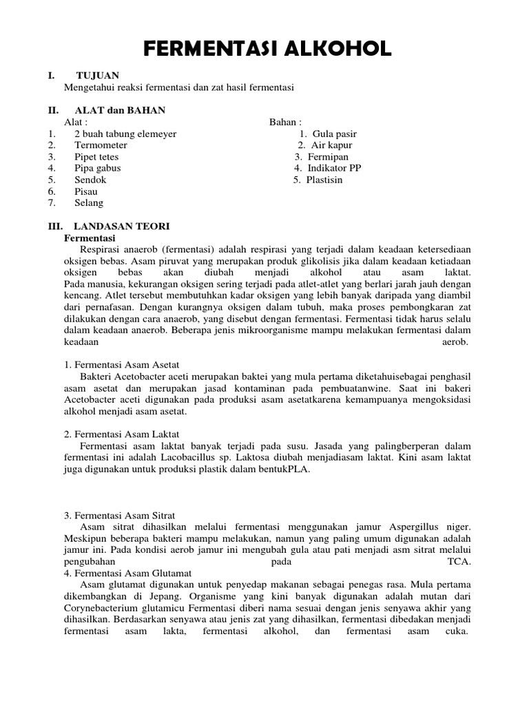 Biologi Oke Laporan Eksperimen Fermentasi Alkohol