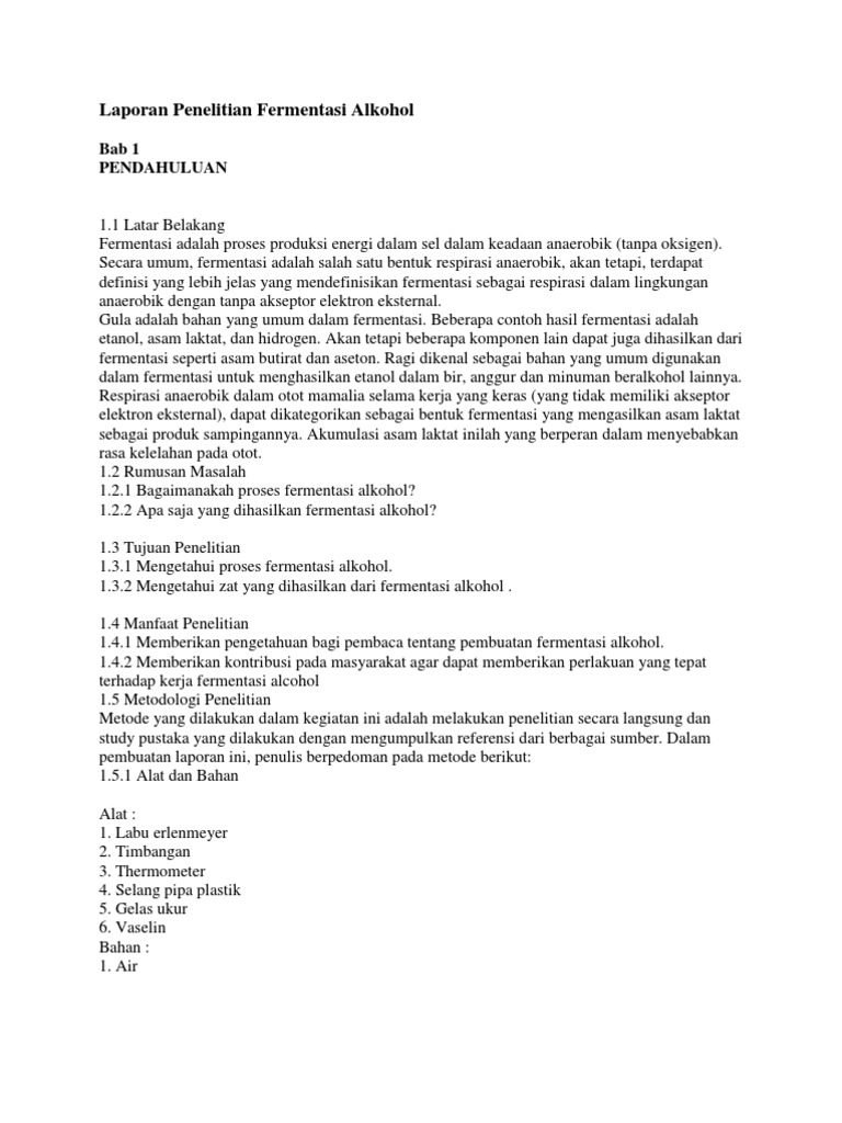 Biologi Oke Laporan Eksperimen Fermentasi Alkohol
