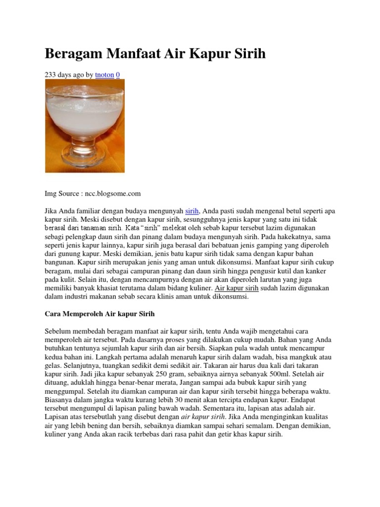 Sederet Manfaat Air Kapur Sirih Untuk Kuliner Indozone Id