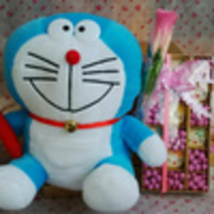 Parsel Valentine Kecil Boneka Doraemon Coklat Valentine Bunga