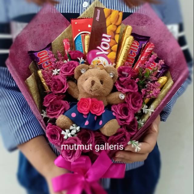 Buket Bunga Coklat Boneka Bandung Murah Unik Teddy Bear Purple