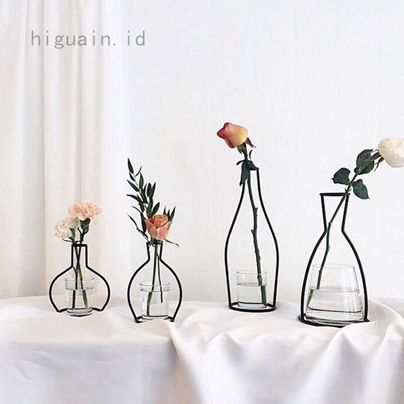 Vas Bunga Tanaman Dengan Bahan Logam Warna Hitam Dan Bergaya
