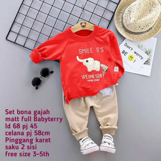 Jual Setelan Anak Gambar Gajah Warna Merah Celana Warna Coklat