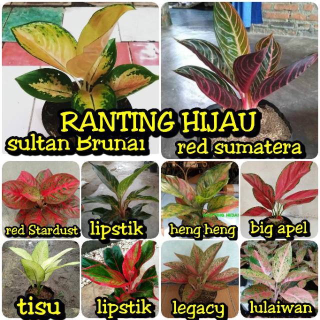 Paket Bibit Bunga Aglonema 16 Jenis Heng Heng Red Stardust Lipstik