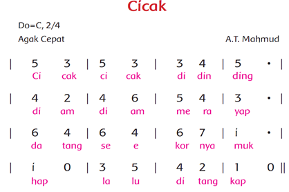 Not Angka Dan Lirik Lagu Cicak Cicak Di Dinding Blog Gado