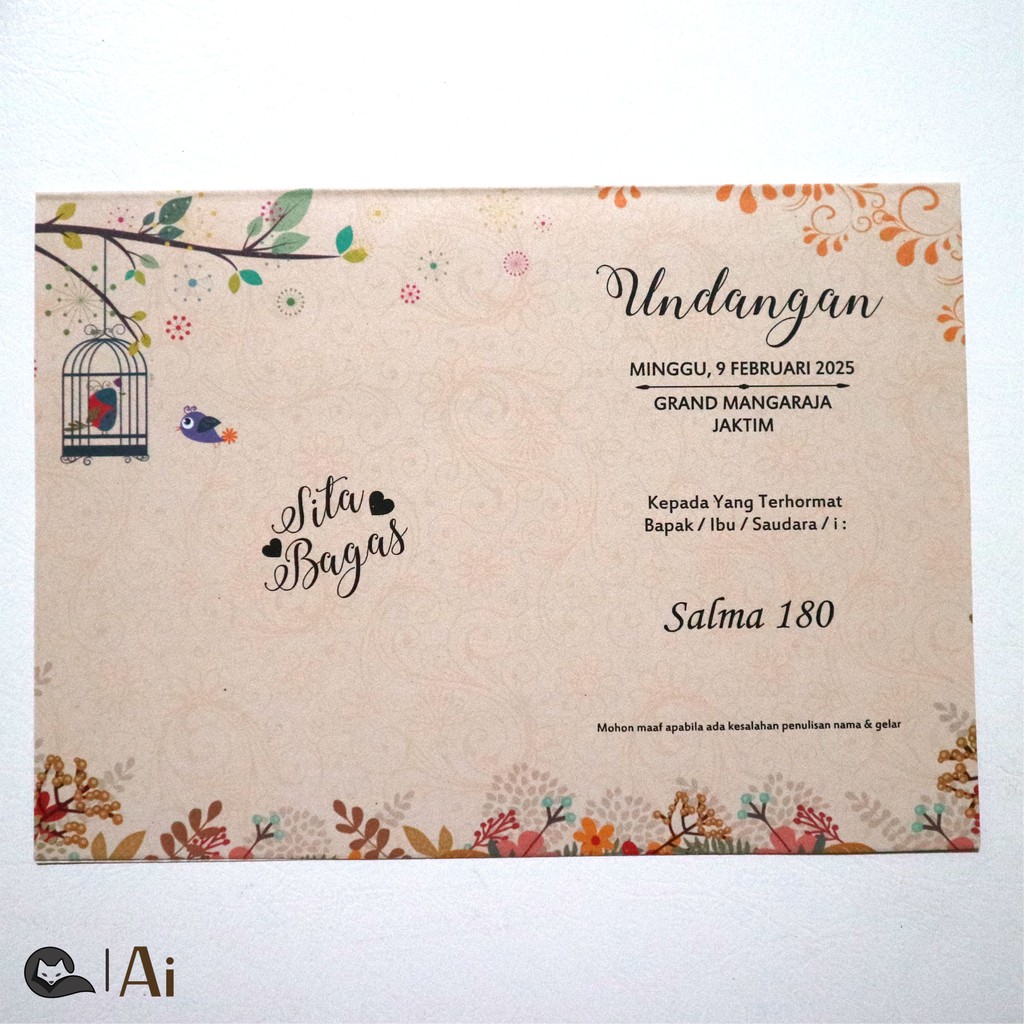 Undangan Pernikahan Vintage Coklat Modern Gambar Bunga Burung