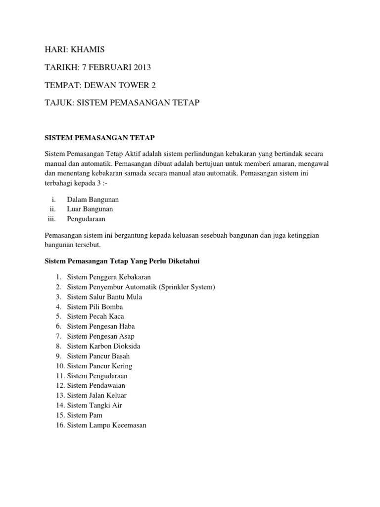 Sistem Pemasangan Tetap