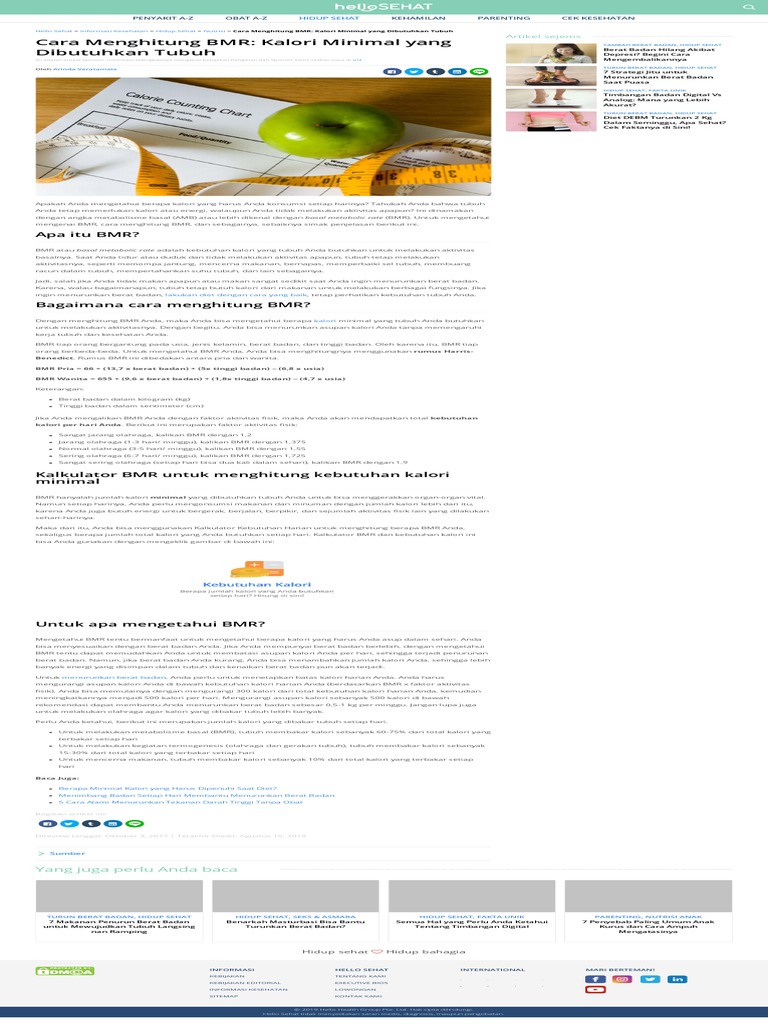 Kalkulator Bmr Dan Kebutuhan Kalori Harian Hello Sehat