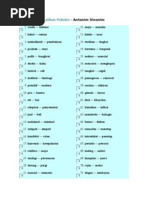 Contoh Soal Psikotes Sinonim Dan Antonim Dan Jawabannya Kumpulan