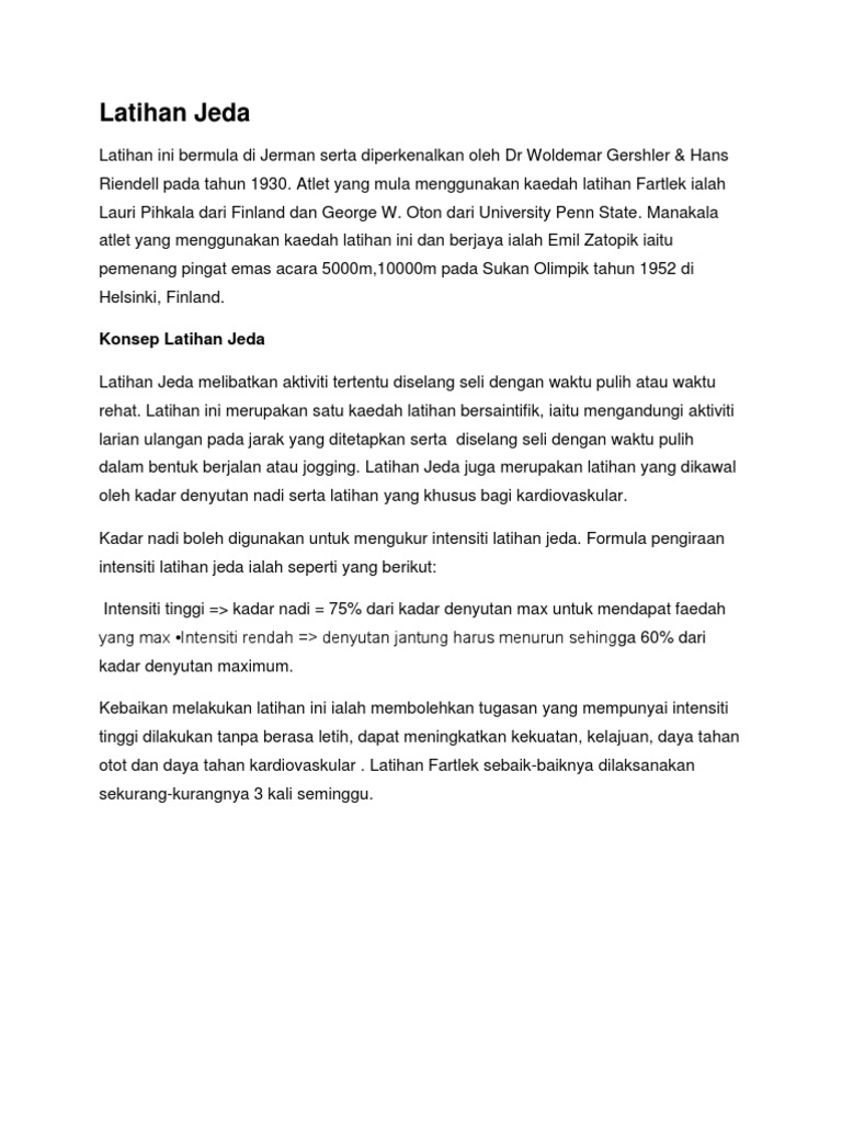 Sukan Dan Rekreasi Latihan Jeda
