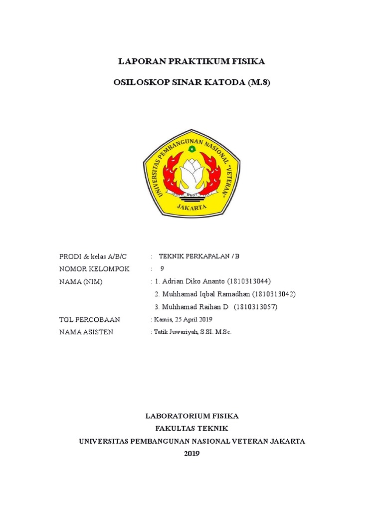 Laporan Praktikum Fisika Osiloskop Sinar Katoda M 8 Prodi