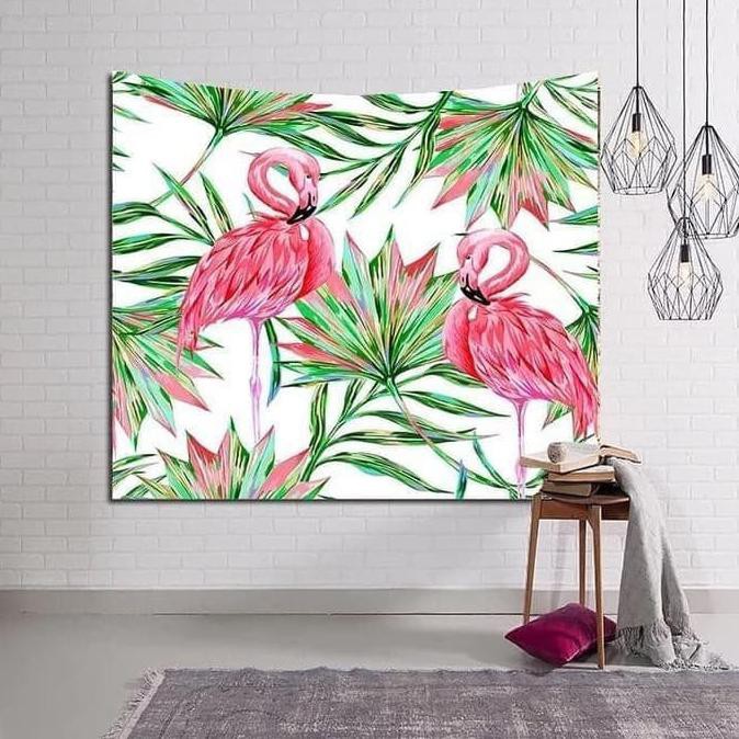 Wall Deco Kain Motif Daun Dan Flamingo Pink Hiasan Dinding Lukisan