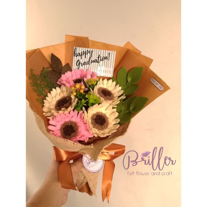 Buket Wisuda Bunga Flanel Size M Bisa Custom Jenis Bunga Dan