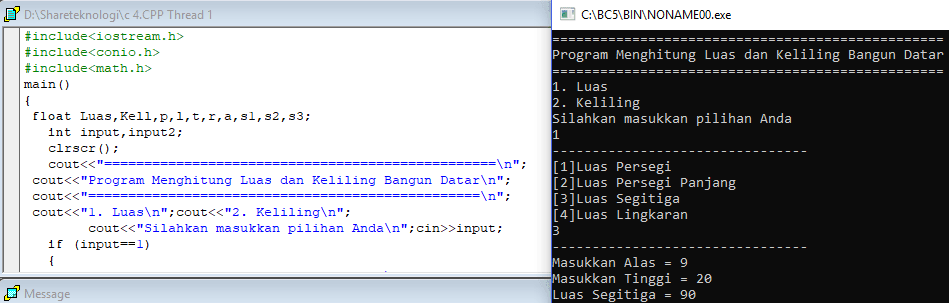 Program C Menghitung Luas Lingkaran Luas Segitiga