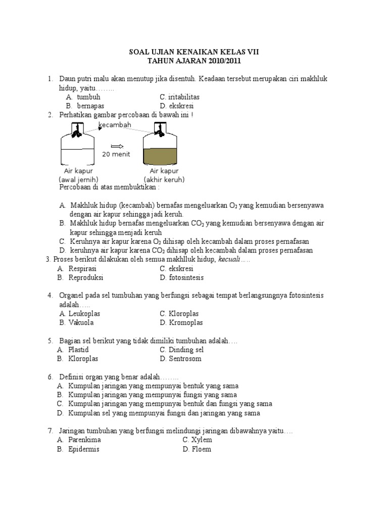 Soal Uas Genap Klas Vii Ipa