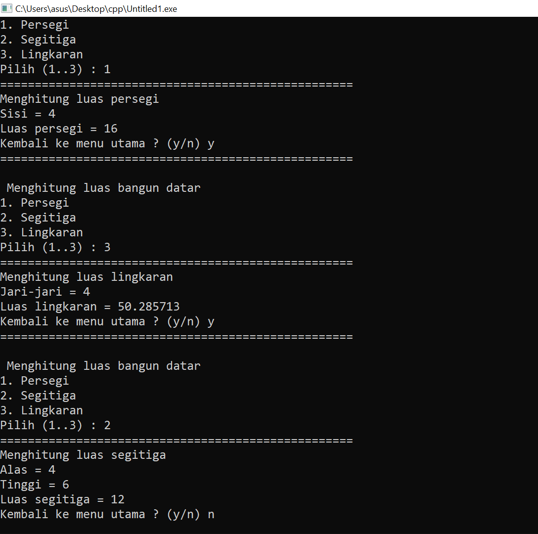Program C Menghitung Luas Lingkaran Luas Segitiga