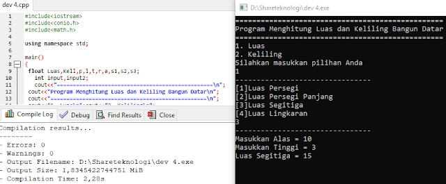Program Dev Menghitung Luas Lingkaran Dan Keliling Bangun Datar