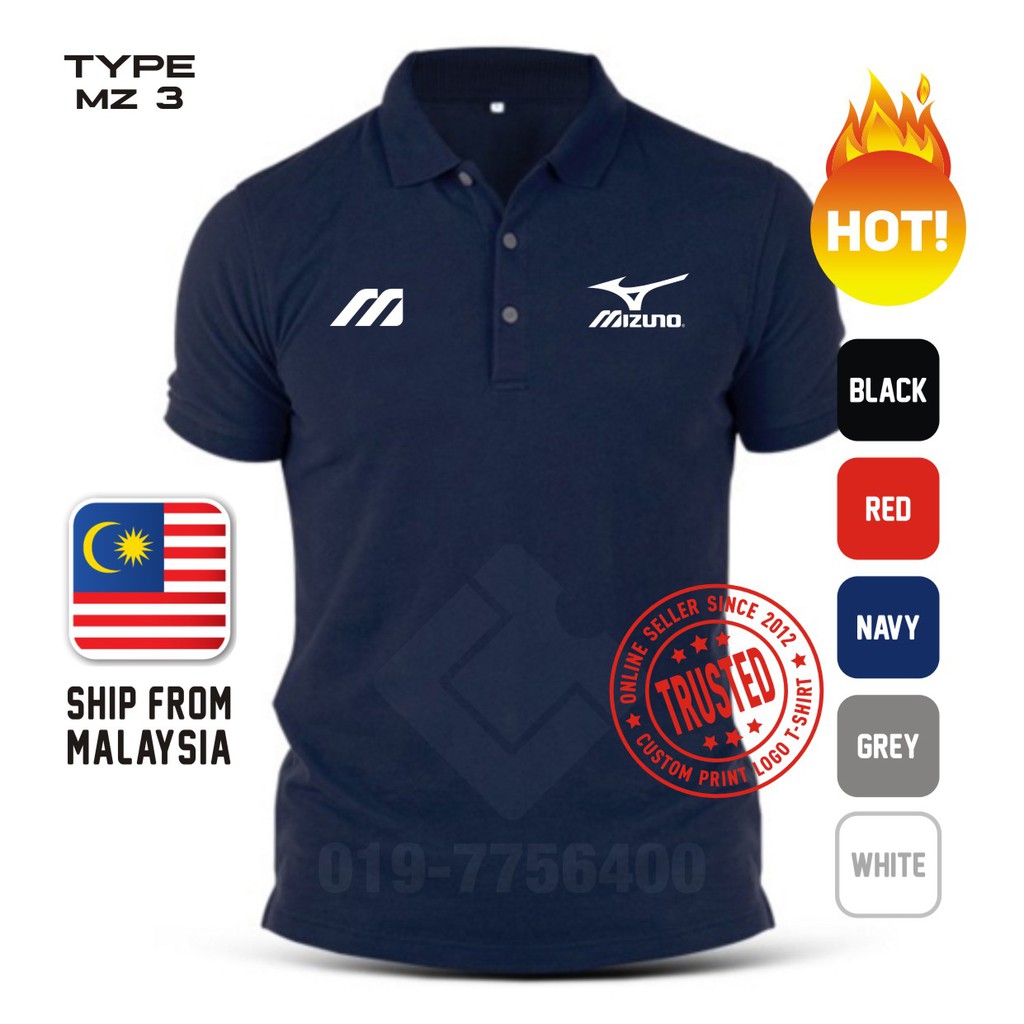 Polo Tee Shirt Collar Baju Mizuno Custom Print Unisex Cutting For