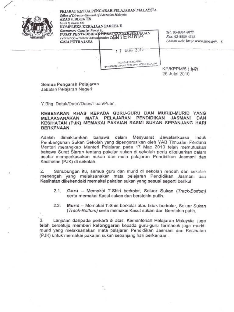 Kebenaran Pakaian Sukan Waktu Pjk Untuk Guru Dan Murid Sepanjang