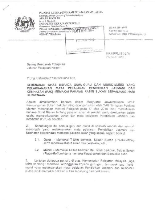 Kebenaran Pakaian Sukan Waktu Pjk Untuk Guru Dan Murid Sepanjang