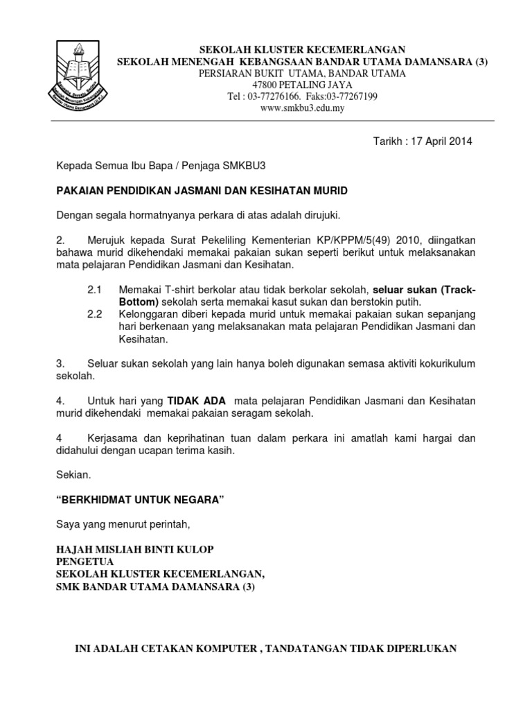 Pekeliling Memakai Pakaian Sukan Pdf Document