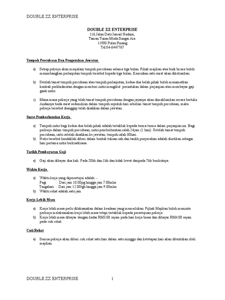 Termination Of Employment Bm Version Pdf Document