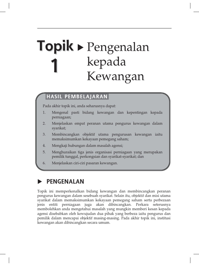 Topik 1 Pengenalan Kepada Kewangan