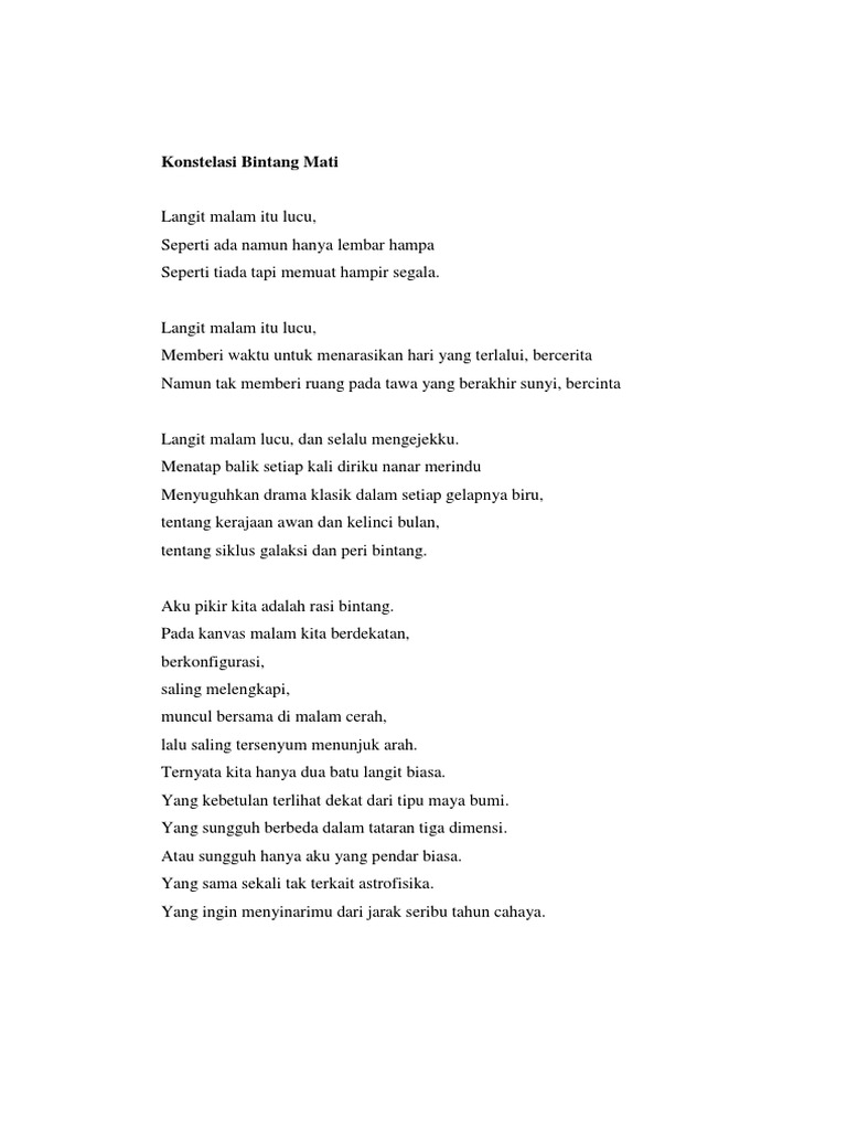 Puisi Konstelasi Bintang Mati Made Ayu Dwi Pradnyawati Docx
