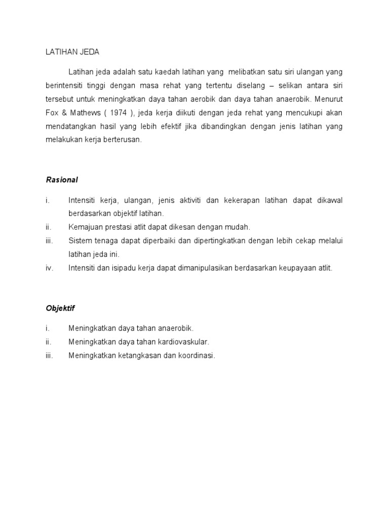 Rasional Latihan Jeda