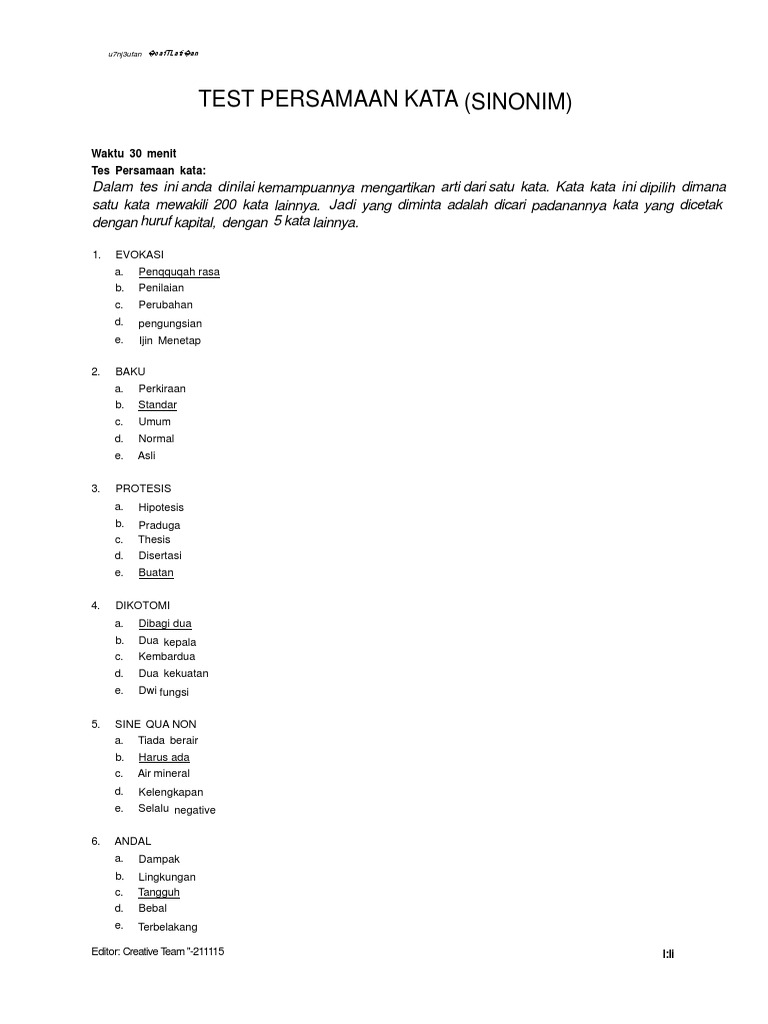 Test Sinonim Persamaan Kata Pdf Google Drive