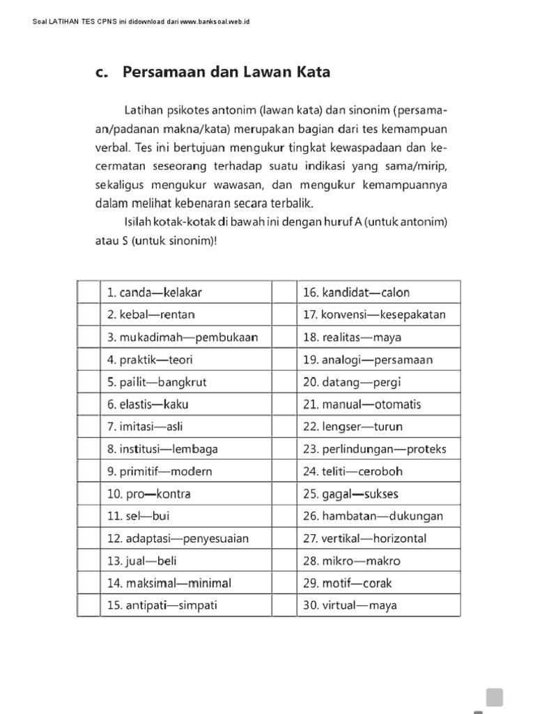 Doc Latihan Psikotes Antonim Sinonim Sinta Jojo Academia Edu