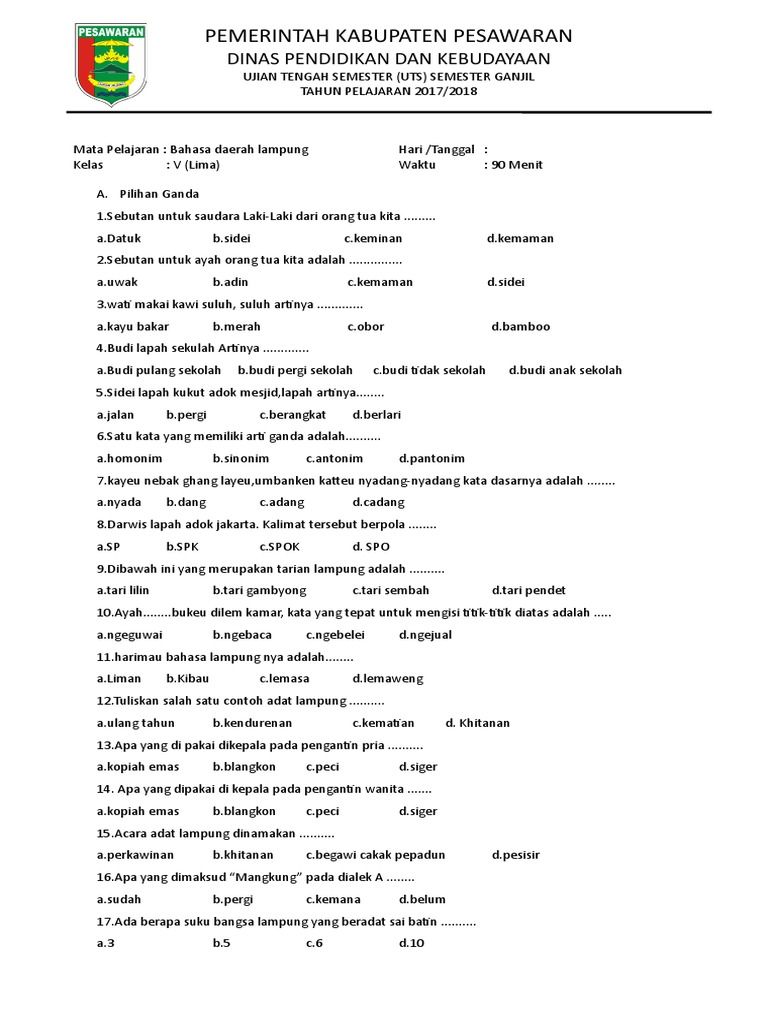 Pelajaran Bahasa Lampung Dan Bahan Tanya Jawab Untuk Siswa Sd Docx