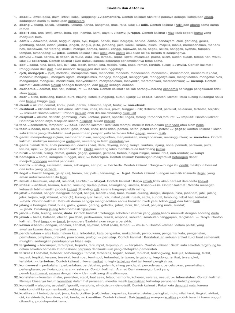 Contoh Kalimat Sinonim Dan Antonim Lengkap Dengan Artinya Docx