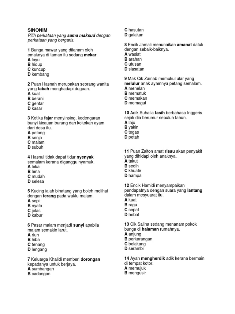 Latihan Sinonim
