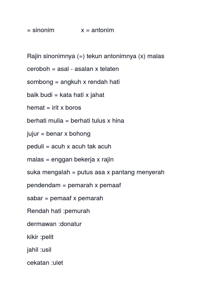 Sinonim Dan Antonim Dari Kata Diatas Adalah Lengkap Ya Mohon