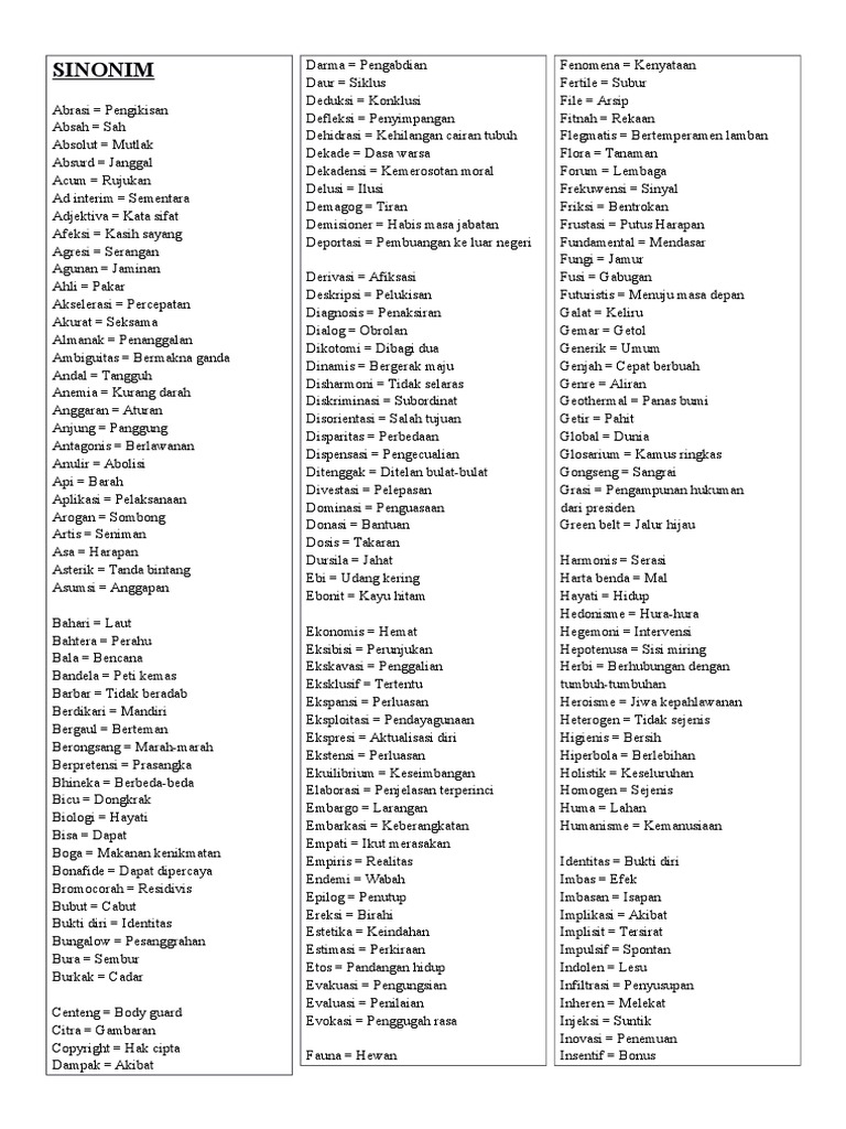 Pdf Hafalan Materi Antonim Dan Sinonim Sman110 Jakarta Academia Edu