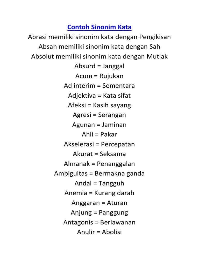 Pdf Hafalan Materi Antonim Dan Sinonim Sman110 Jakarta Academia Edu