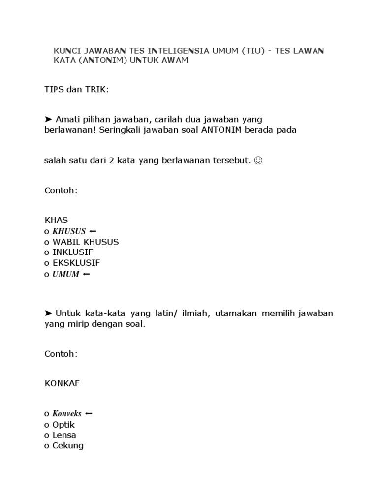 Kunci Jawaban Tes Tiu Lawan Kata